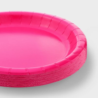 Ensure a convenient post-celebration cleanup with the 20ct 8.5in Disposable Dinner Plates Hot Pink from Spritz™. These disposable dinner plates provide ample space for serving a variety of appetizers, main dishes and desserts. Crafted from sturdy paper and featuring a sleek design, the 20ct 8.5inch disposable dinner plates in hot pink from Spritz™ are microwave-safe for easy handling and preparation of food.