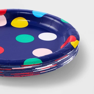 Bring a fun element to your meals with these 20ct Confetti Dots Snack Plates from Spritz™. These paper plates feature confetti patterns against a blue backdrop that can easily complement your table decor. Its disposable design makes it easy for post party cleanup. Serve up a variety of snacks, treats and desserts using these paper plates from Spritz™ to delight your guests.