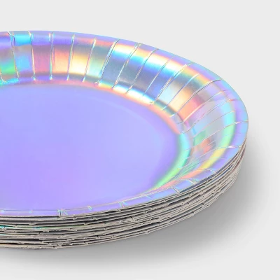 Bring a fun element to your meals with these 20ct Disposable Holographic Dinner Plates White from Spritz™. These paper plates feature a holographic color that can easily complement your table decor. Its disposable design makes it easy for post party cleanup. Serve up a variety of snacks, treats and desserts using these paper plates from Spritz™ to delight your guests.