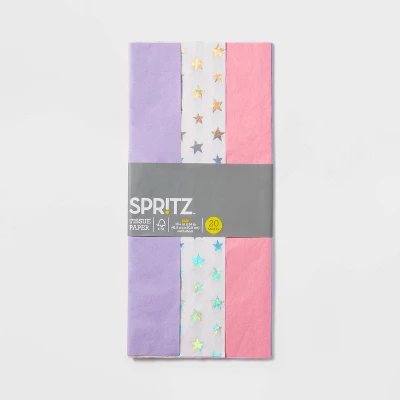 It’s convenient to pack unique gifts with this Pink Purple Star Tissue Paper – Spritz™. This pack contains 20 pre-cut sheets in blue and purple colors, providing a range for wrapping all kinds of gifts. The sheets from Spritz™ are easy to wrap and work well for temporary cushioning items like wine bottles and glass items.