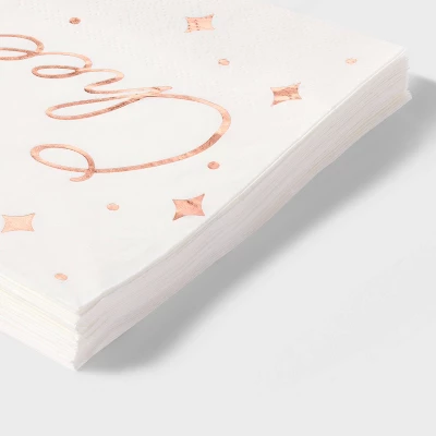 These simplistic 30ct Beverage Napkins ‘Cheers’ Rose Gold from Spritz™ go well with any party accessories. These paper lunch napkins are ideal for serving a wide range of snacks, as well as wiping away spills. They complement a range of dining decor styles with its simplistic white color and ‘Cheers’ in rose gold. Place these napkins from Spritz™ next to your tableware or in a napkin ring to add a touch of sweetness to your parties.