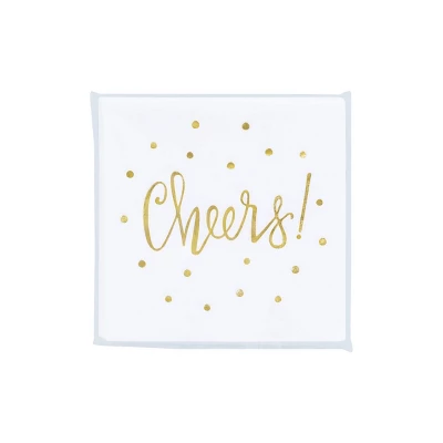 Bring a festive look to your party table settings with the 30ct ‘Cheers’ Beverage Napkin from Spritz. The gold foil cheers will set the party mood and allow guests to enjoy the treats. These napkins add a vibrant pop to any table, big or small, while durable materials make these perfect for family meals or casual get-togethers in your yard or on your patio or balcony.