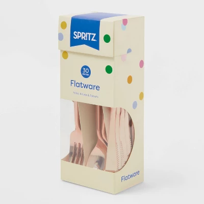 Host your dinner party with ease using 30ct Rose Gold Cutlery from Spritz™. This cutlery set is useful when on a picnic or hosting a dinner party at home. Comes in a pack of 10 pieces of spoons, forks and knives each. The disposable design of this cutlery set makes post party cleanup a breeze.