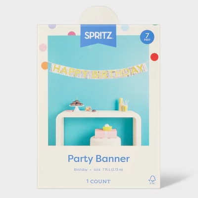 Ensure sure your festivities do nothing but sparkle with this Gold and Silver Happy Birthday Banner from Spritz™. This gilded party banner layers fluttery silver streamers behind golden letters that spell out ‘Happy Birthday!’ in radiant shine. This festive line of letters is attached to a sturdy string which you can loop, tie or tape for hassle-free hanging. Attach this streamer party banner to walls, doorways, banisters and more to bring an extra twinkle to the birthday party.