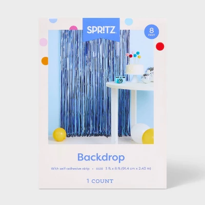 Add more shine to your party with this Holographic Metallic Fringe Backdrop from Spritz. You can hang this piece in a doorway to let your guests make a glittery entrance or use it as a backdrop and layer with other decorations. The blue color foil fringes work well with a variety of lights to instantly glam up the room. This curtain drop from Spritz hangs 8-feet long and 3-feet wide, it also comes with peel and stick adhesive tape to decorate without any hassle.