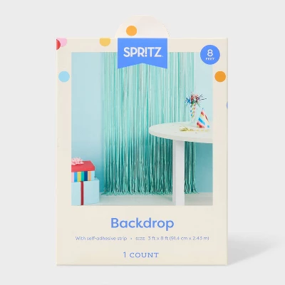 The Iridescent Backdrop Mint from Spritz™ creates a shimmering background that is easily layered with other party decorations or hung in a doorway to set the party scene as guests arrive. Whether you hang it in the doorway to create a dramatic entrance to your party or event, or mount it on the wall with balloons and props to create a DIY photo booth backdrop, the Spritz™ iridescent backdrop in mint provides a super easy way to elevate your party decor and make sure your event is extra memorable.