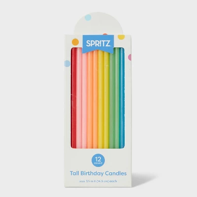 Light up your space with the Neon Rainbow Tall Birthday Candles 12ct from Spritz™. These fun candles are perfect for setting the mood without overpowering your senses. Crafted from wax, each candle comes with a single wick, offering long burn time. Whether you’re hosting a dinner party, creating a cozy corner, or simply enjoying a quiet evening in, these tapers bring the right amount of soft light you need.