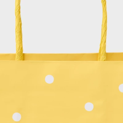 Present your gift in style in this Small Gift Bag with White Dots on Yellow from Spritz™. Great for handing out gifts, goodies, sweets, holiday treats and more, as well as oddly shaped gifts that are hard to gift wrap, this small gift bag makes a great pick for handing out gifts on birthdays, special days, anniversaries, or other events and occasions. Showcasing a soft yellow hue with white dots, it’s sure to add sweet flair to your gifts, while the tote handles make it easy to carry.
