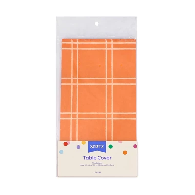 Enjoy a seasonal table setup with the Thanksgiving Orange Plaid Table Cover from Spritz™. Made from durable polyethylene material, it’s a simple way to add a warm, festive touch to your dining space. The orange plaid pattern brings in cozy fall vibes, making it great for family dinners, holiday parties, or casual gatherings. It’s easy to spread out and ideal for holiday decorations, helping set the tone for a cheerful and relaxed celebration.